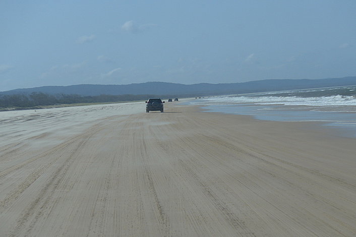 The Pinnacles Coloured Sands - learn how 72 colours of sand formed and the Butchulla legends surrounding them. We stop to take a picture as we drive along 75 Mile Beach.